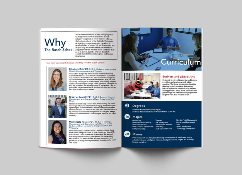 This viewbook is handed out when a prospective student expresses interest in the Busch School of Business.